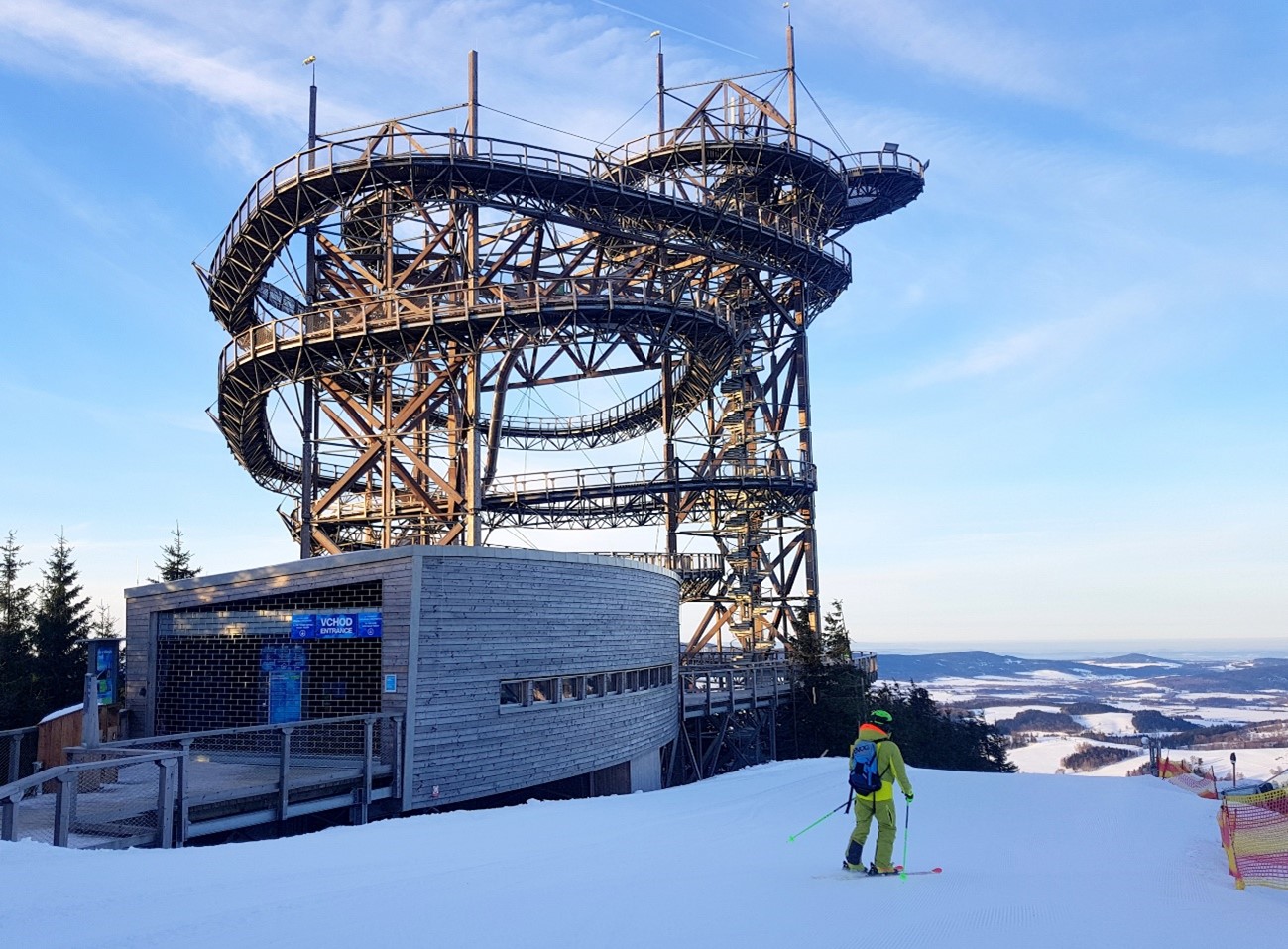 Dolní Morava, parque infantil e trilha nas nuvens – Esteira rolante, teleférico, espaço para iniciantes a partir de três e até cinco anos em parque infantil demarcado e com rígidas normas de segurança esperam por você e seus pequeninos na Estação de Esqui Dolní Morava. Há inúmeras outras atividades, como jogos de inverno, caminhadas usando raquetes, passeio noturno em trenó e a Trilha nas Nuvens que, além de levar ‘ao espaço’, é verdadeira rede de caminhos de madeira que se entrelaçam.