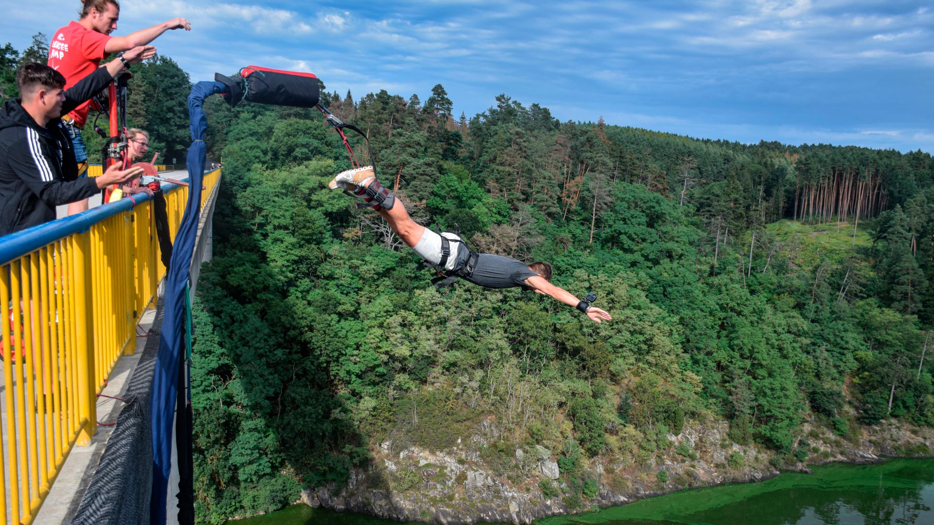 Se você sofre de vertigens, com esta atividade testará todos os seus limites. A proposta é saltar da ponte mais alta da República Tcheca, da torre de televisão ou de guindaste. Não se esqueça que, além da emoção que o bungee jump proporciona, ocasiona vistas prodigiosas – bom incentivo para saltar de todos os locais possíveis do país. Embora pareça muito arriscado, este esporte radical raramente acarreta acidentes e a prática contempla todas as medidas de segurança.