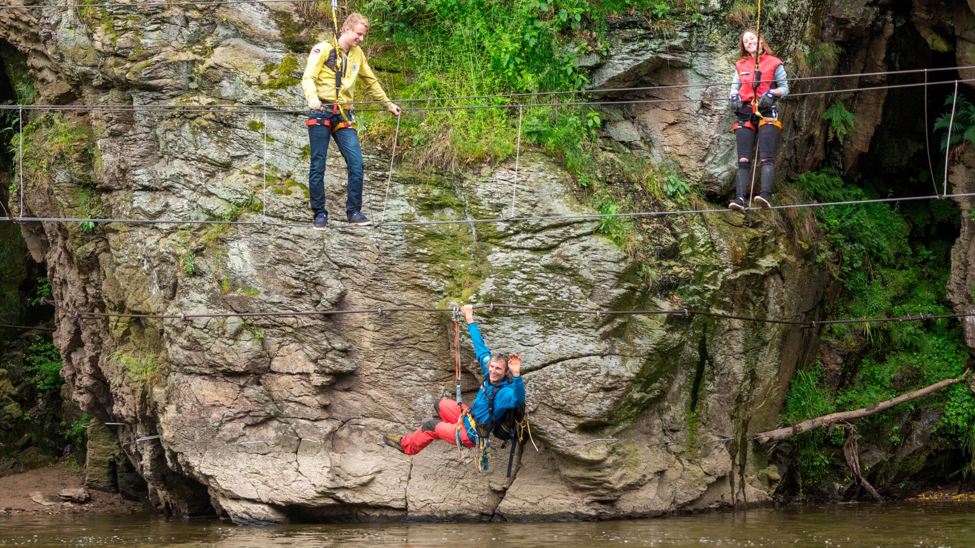 É inesquecível aquele momento anterior de incerteza quando, depois de verificar se o cinto está bem apertado, você pula da plataforma inicial para viajar suspenso por cabo, ao longo de dois quilômetros. Quer a tirolesa ofereça um único voo ou várias estações, é uma experiência emocionante. Uma de suas vantagens é que não exige excelente preparo físico ou certa idade. Uma das tirolesas mais incríveis da República Tcheca está localizada no Complexo Esportivo Klíny, na Montanha Krušné hory, e atravessa o vale Šumenské údolí a 150 metros de altura. Com 2.200 metros de comprimento, é a quinta tirolesa mais longa da Europa (e a vigésima do mundo).