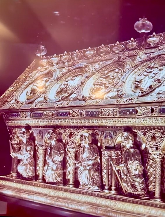 Trata-se do Relicário de São Mauro, uma peça do século 13 esculpida a mão em ouro, prata, cobre, cravejada de pedras preciosas. Foi usada como túmulo para os santos São Mauro, São Timoteo e São João Batista.