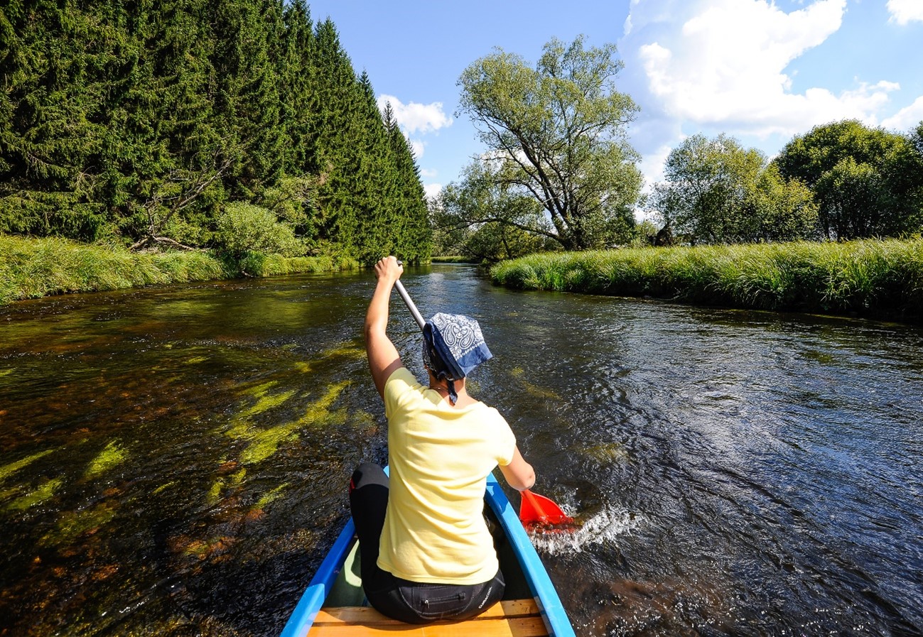 A seção 1 do Moldava é ideal para canoagem e rafting. Começa na nascente (Kvilda), quando o rio deixa o berço para espreguiçar e enroscar na bela natureza do Parque Nacional  Šumava. Os encantos já começam aqui. A navegação turística é limitada a pequenos barcos – a preferência é para os praticantes de canoagem e rafting – e há trilhas para ciclismo e caminhadas, que levam até a fonte do rio e a bucólica Lenora.