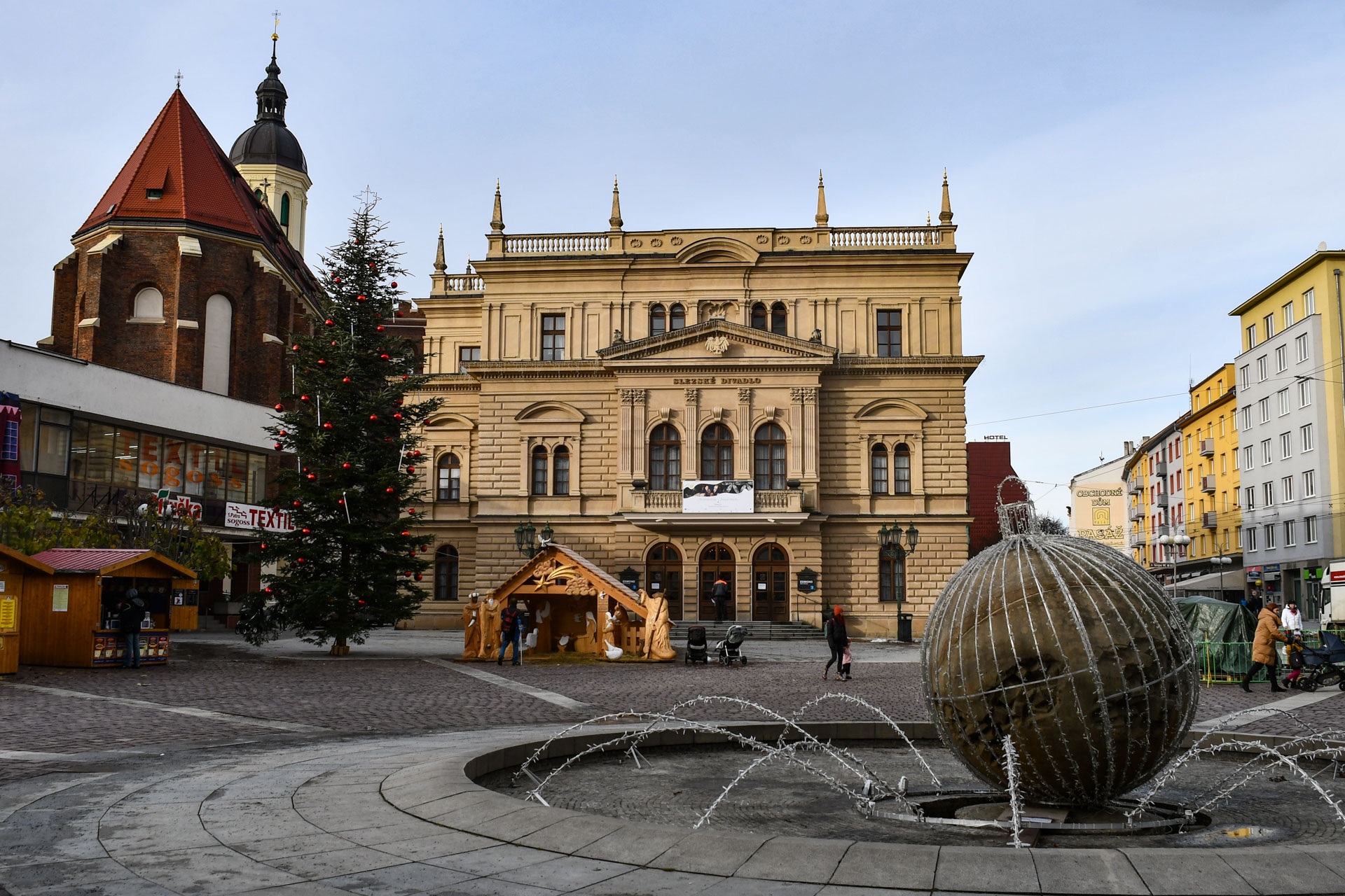Bem em frente ao Hláska, junto à praça principal (Horní náměstí) está o Teatro da Silésia, em estilo neorrenascentista. Inaugurado em 1805, embora modificado e reconstruído em várias ocasiões devido aos incêndios, aos danos em sua fachada por bomba que caiu próximo ou ainda por conta dos modismos de cada época. A Casa de reúne companhias de teatro, de ópera e realiza regularmente apresentações para públicos de todas as idades.