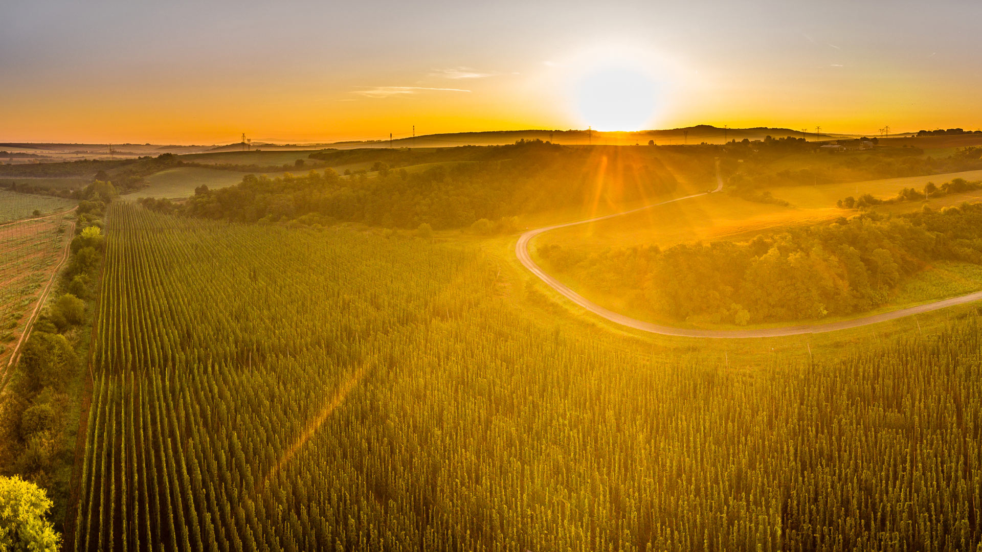 Assim brilham os campos de lúpulo na Tchéquia.