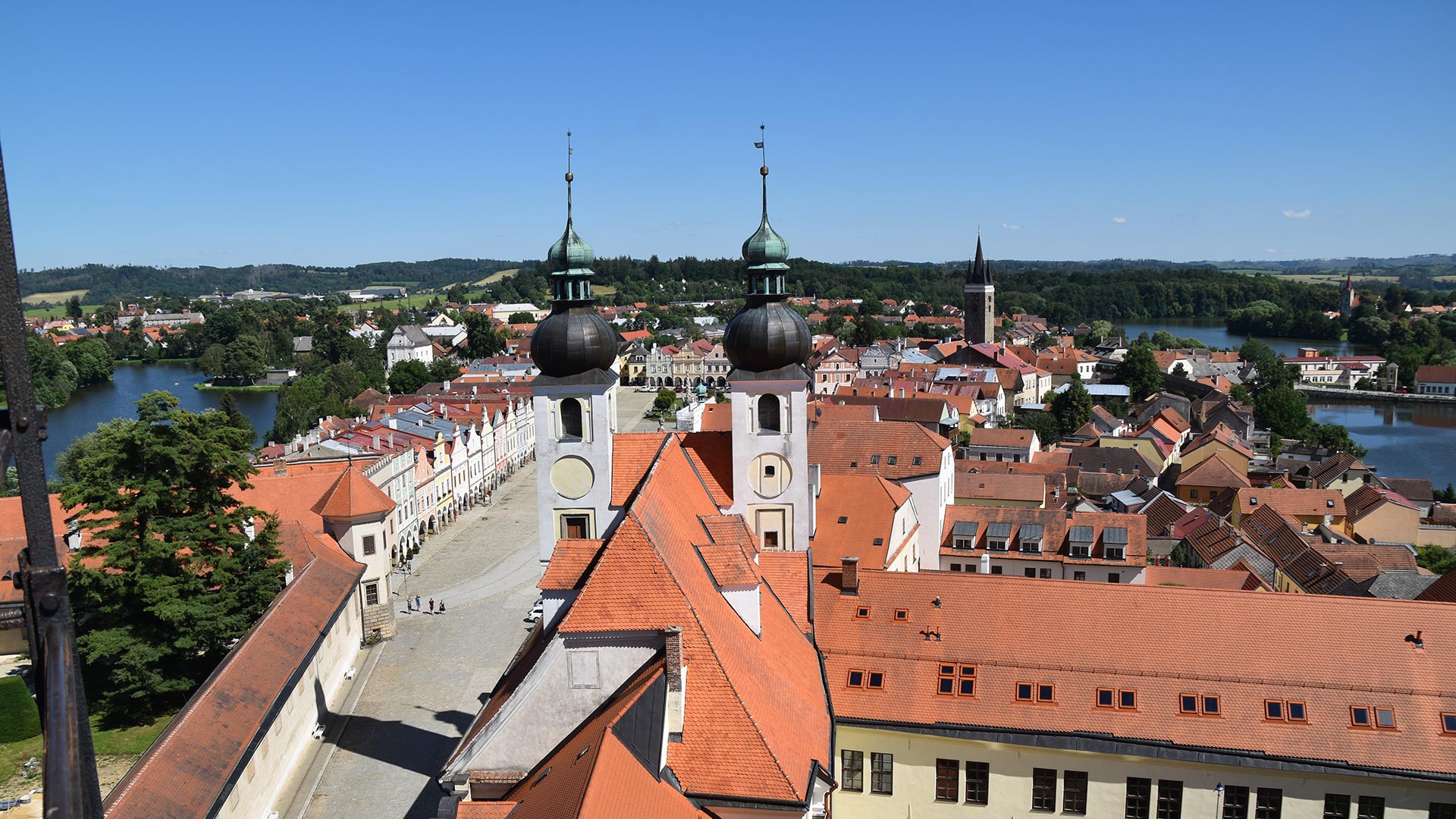 O que primeiro atrai a atenção em Telč é a grande quantidade de água que circunda a cidade, a ponto de alguns a chamarem de Veneza Tcheca. Quer concordemos ou não com o desejo comparativo, esse recurso é especialmente apreciado no verão. Embora não haja gôndolas ou barcarolas, a grande extensão da lagoa permite pescar ou desfrutar de passeios de barco a remo que, além de nos fazer relaxar ao ritmo da natureza, oferecem vistas magníficas da cidade, às vezes realçadas pela melodia cativante de um acordeão.