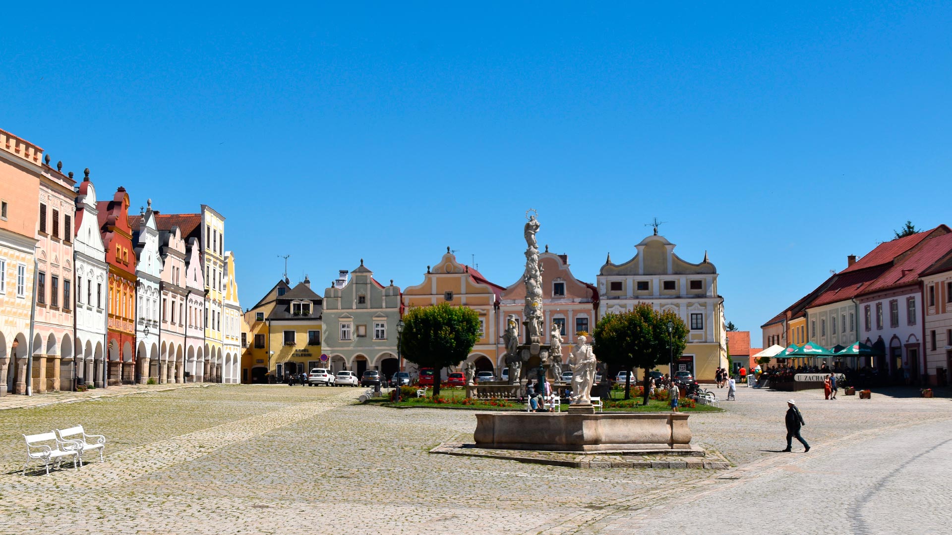 Larga, alongada e muito colorida, a praça principal de Telč exibe beleza e mistérios. À primeira vista, prende atenção a longa fileira de fachadas coloridas, a Coluna da Peste, a fonte com a estátua de Santa Margarida e a Torre do Espírito Santo – construção românica que remonta ao século 13 e é a mais antiga da cidade. A beleza desta praça é quase avassaladora, por isso recomendamos passear por ela aos poucos, sem pressa, para descobrir outros lugares encantadores e não tão óbvios.