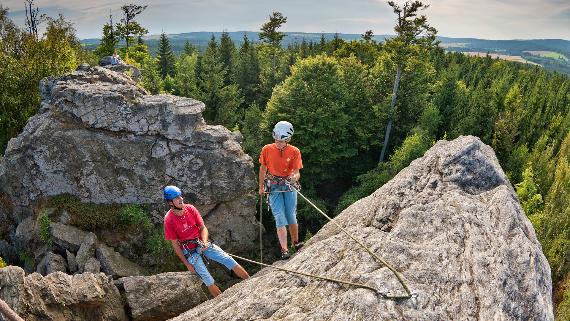 Se você é um daqueles casais que não consegue conceber a vida sem esportes, sem praticar crossfit ou sem jogar qualquer coisa, grandes emoções esperam por você na República Tcheca. Que tal compartilhar a adrenalina enquanto faz uma escalada, passa por via ferratas ou tenta domar um rio selvagem a bordo de uma canoa? Um pouco mais descontraído, mas também emocionante, seria fazer um voo de balão. Essa sensação de enfrentar medos e desafios pode ser tão unificadora quanto um jantar à luz de velas. Conheça a via ferrata Bechyně, que corre paralela ao rio Lužnice, no sul da Boêmia; explore a extensa rede de trilhas na serra de Rychlebské hory; ou pratique rafting no rio Moldava, na altura do Parque Nacional Šumava.